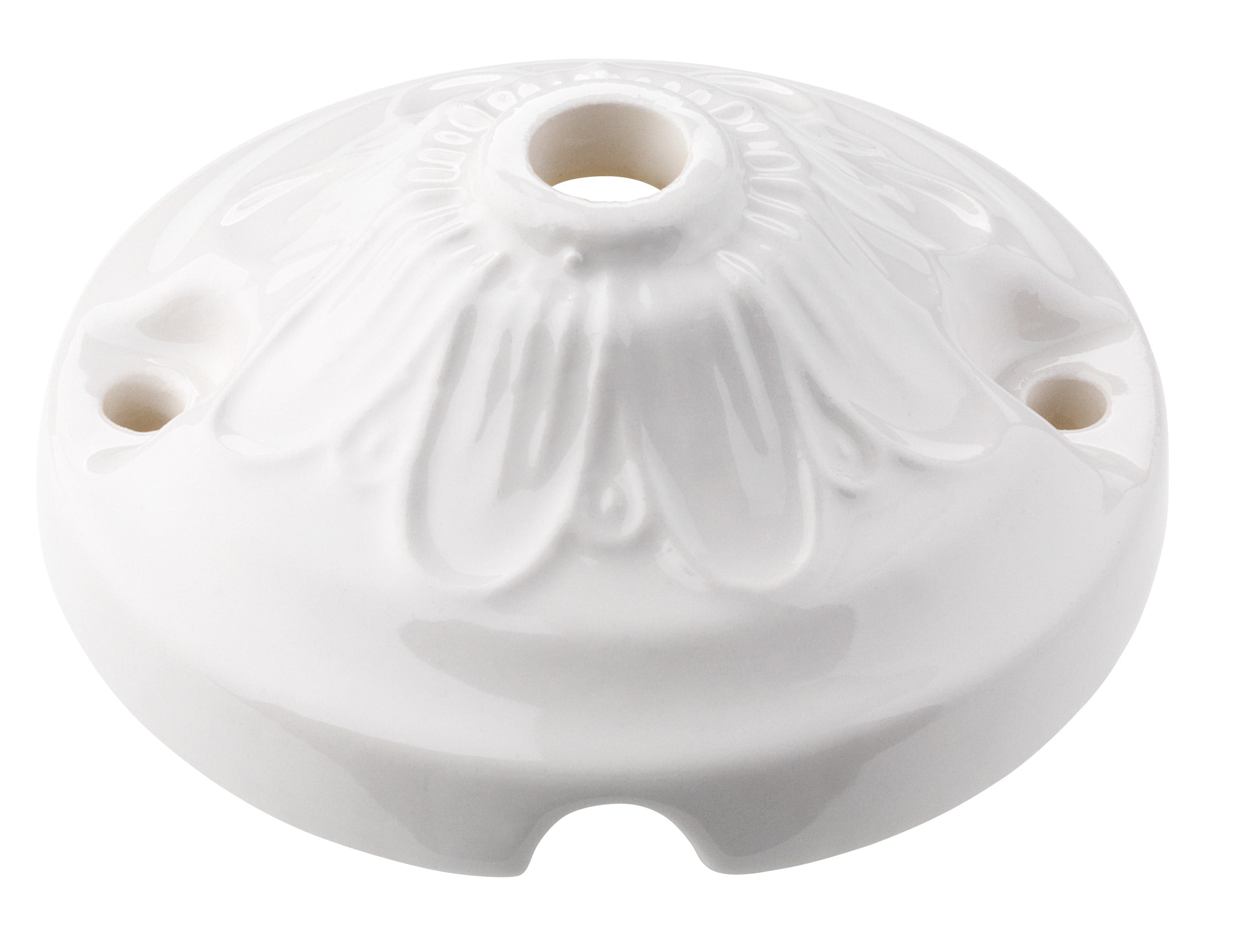 SERIE ELITE Rosone lavorato in porcellana bianca completo di viti - diametro 70 mm - H 30 mm