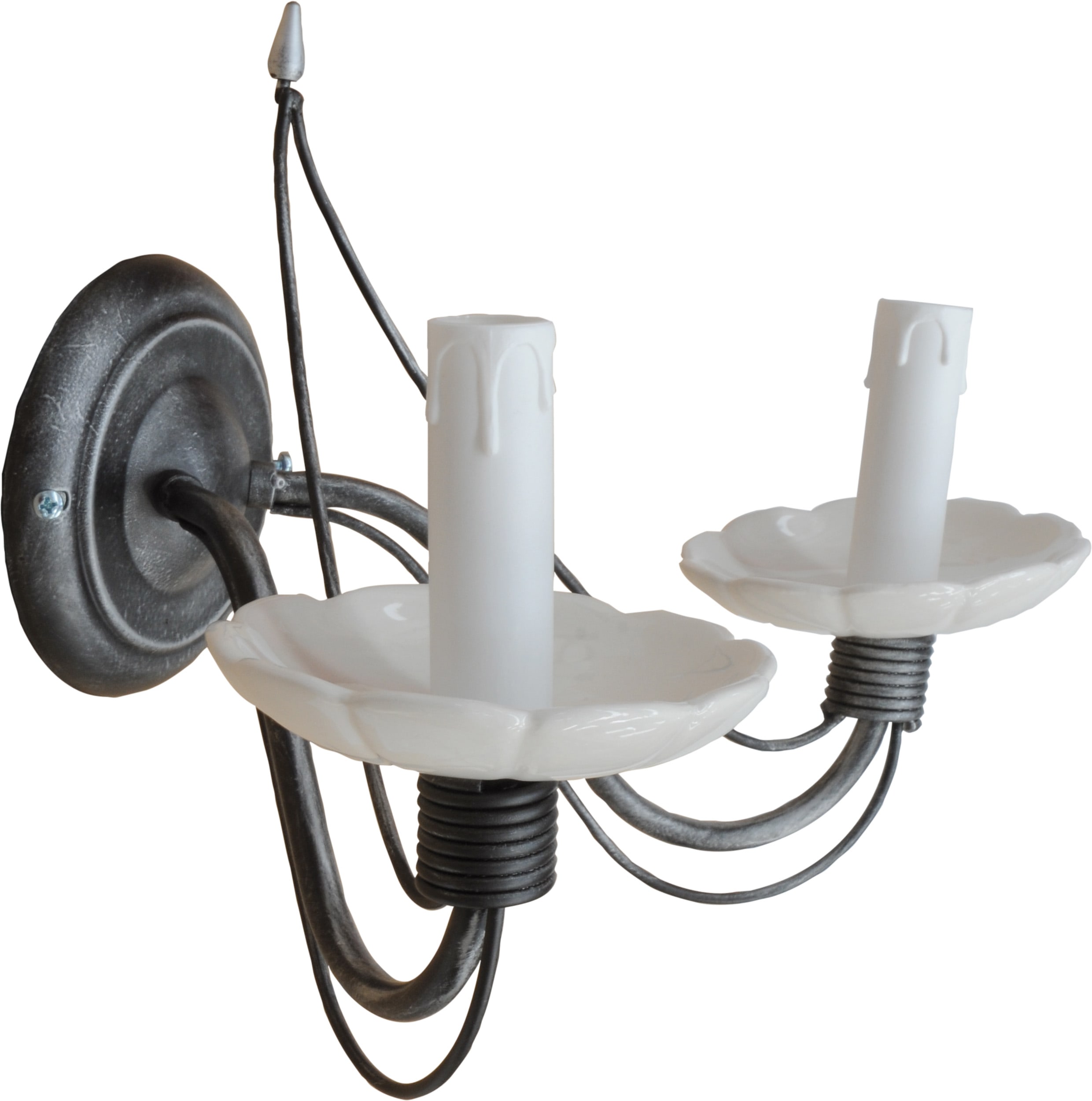 SERIE CANDELA - APPLIQUE Applique - Attacco E14 - Potenza 60 W - Grado di protezione IP 20. A due luci. In metallo. Candela in materiale plastico. Con piattini margherita diametro 12 cm in porcellana bianca.