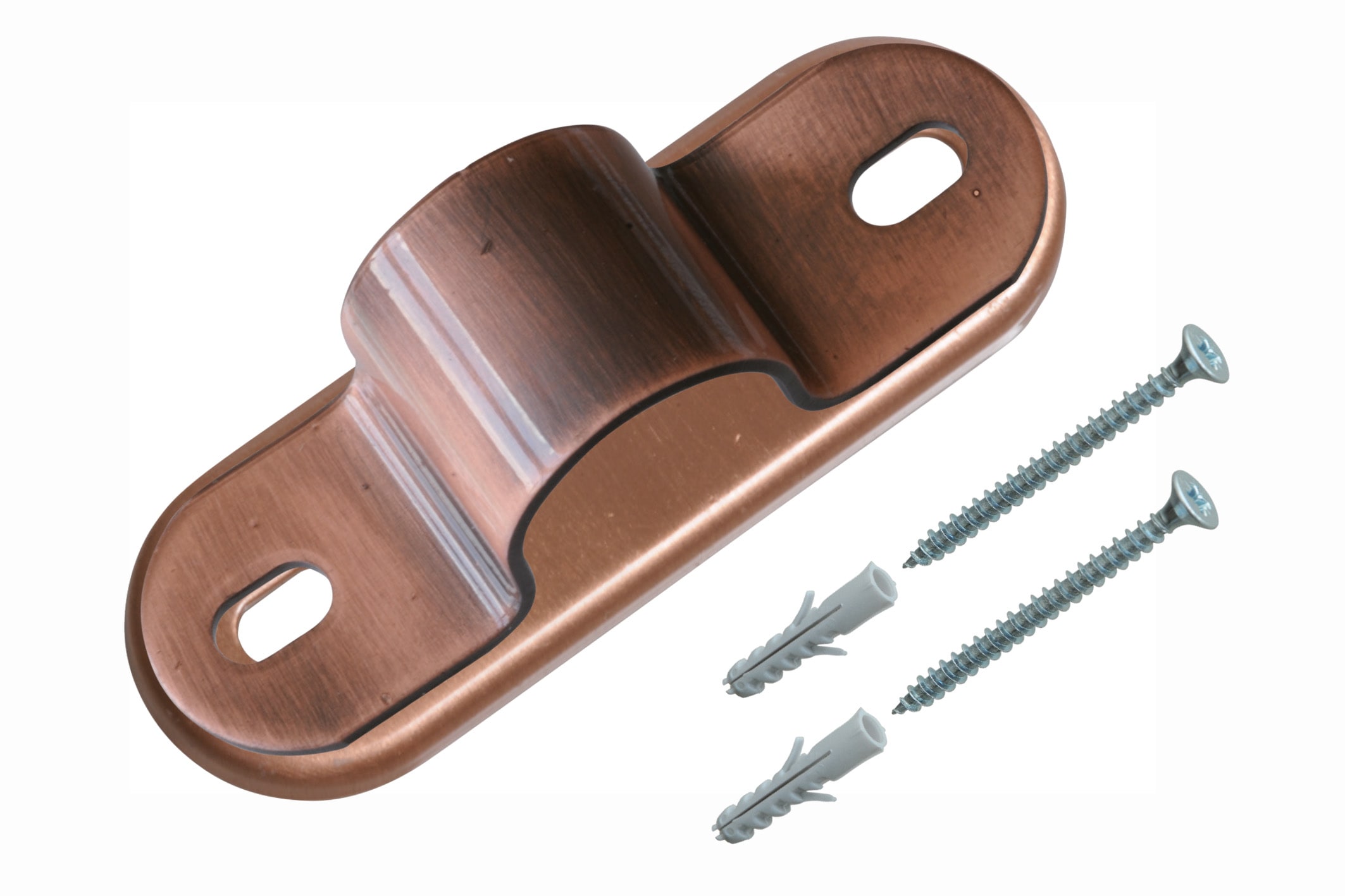 SERIE RAME Clips fermatubo in rame anticato con piastrina completo di viti e tasselli per tubi diametro 20 mm