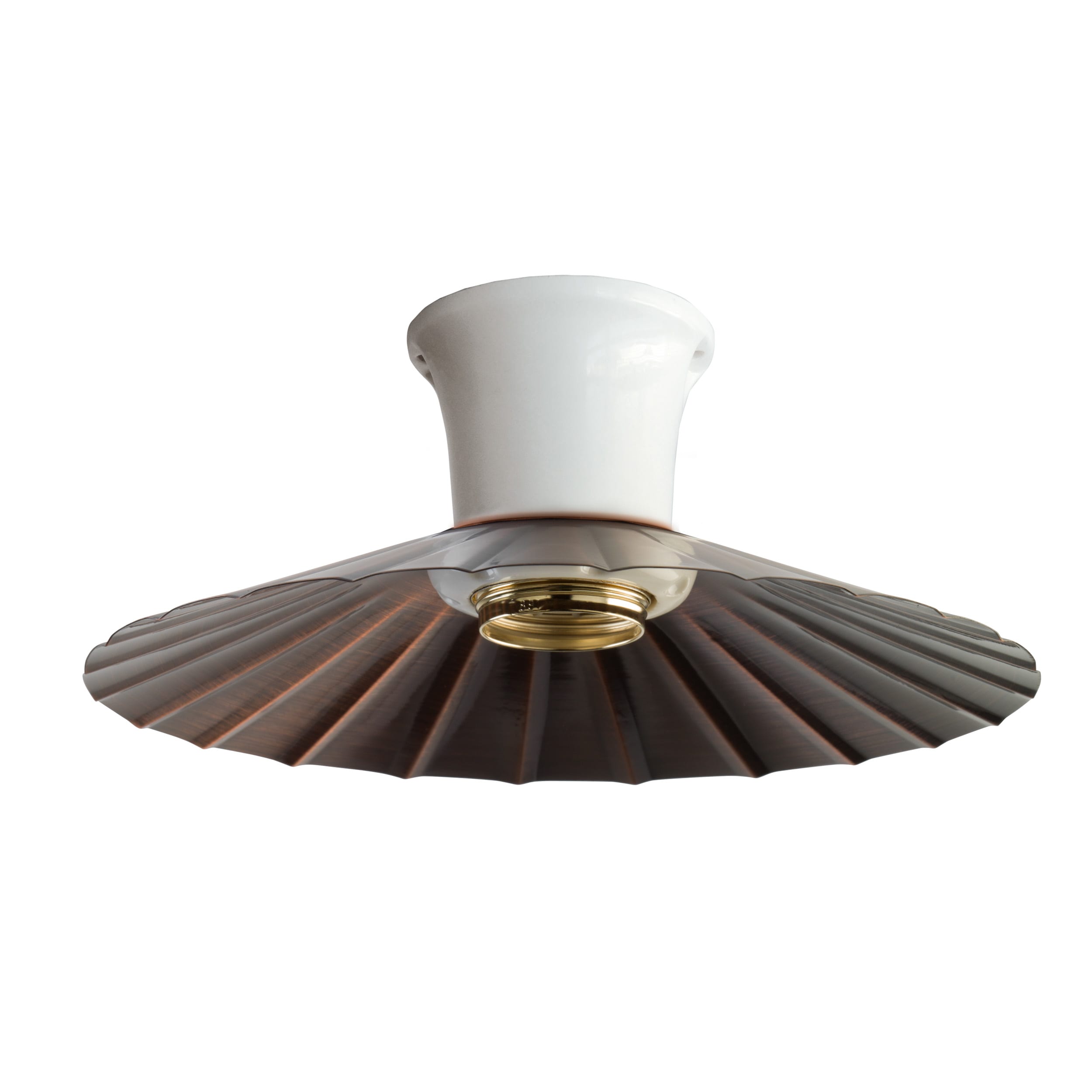 SERIE CLASSIC - IN PORCELLANA BIANCA Spot diritto a parete o soffitto - da usare singolo od in abbinamento a base rame o base porcellana 2.0 -Attacco E27 - Potenza 60W - Grado di protezione IP 20 Con ghiera in porcellana bianca - Con piatto piega diametro 22 cm in rame anticato