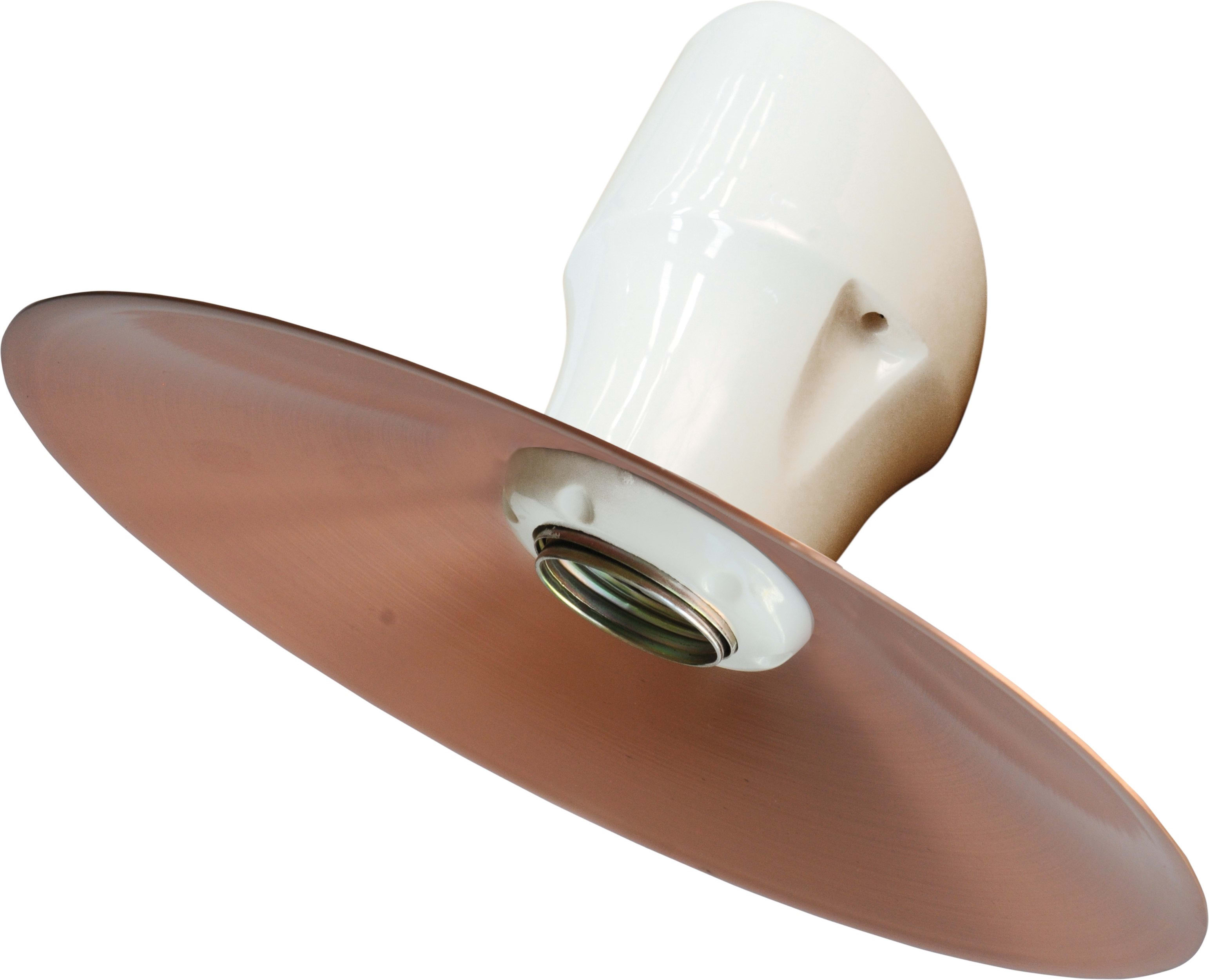 SERIE CLASSIC - IN PORCELLANA BIANCA Spot a parete a 45? - da usare singolo od in abbinamento a base rame o base porcellana 2.0 - Attacco E27 - Potenza 60W - Grado di protezione IP 27 Con ghiera in porcellana bianca - Con piatto liscio diametro 22 cm inrame satinato