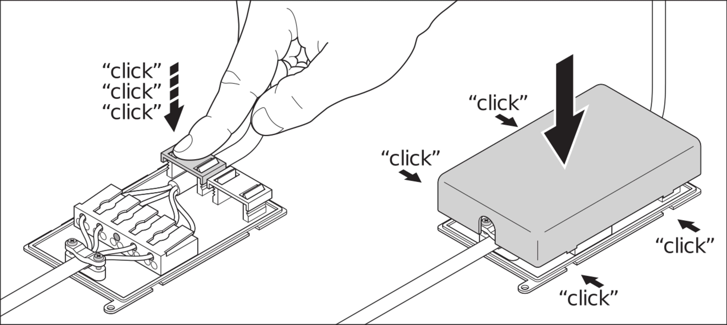 Box di connessione per apparecchi a incasso. Caratteristiche del prodotto: Terminale push a 5 poli incluso. Adatto per apparecchi da incasso On/Off della classe elettrica II (versione L / N). Adatto per apparecchi DALI da incasso (versione L/N/E/D+/D). Vantaggi del prodotto: Connessione senza l'ausilio di attrezzi grazie al pulsante del connettore. Cablaggio passante possibile con box connettore incluso.