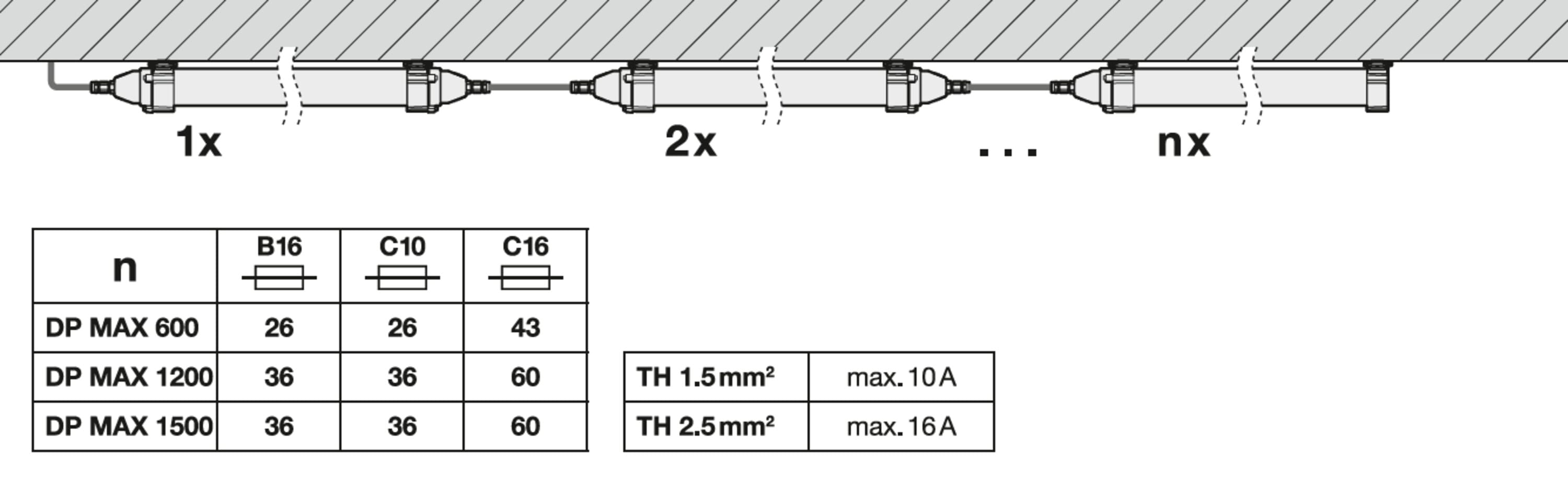Max. numero di apparecchi per interruttore magnetotermico B16: