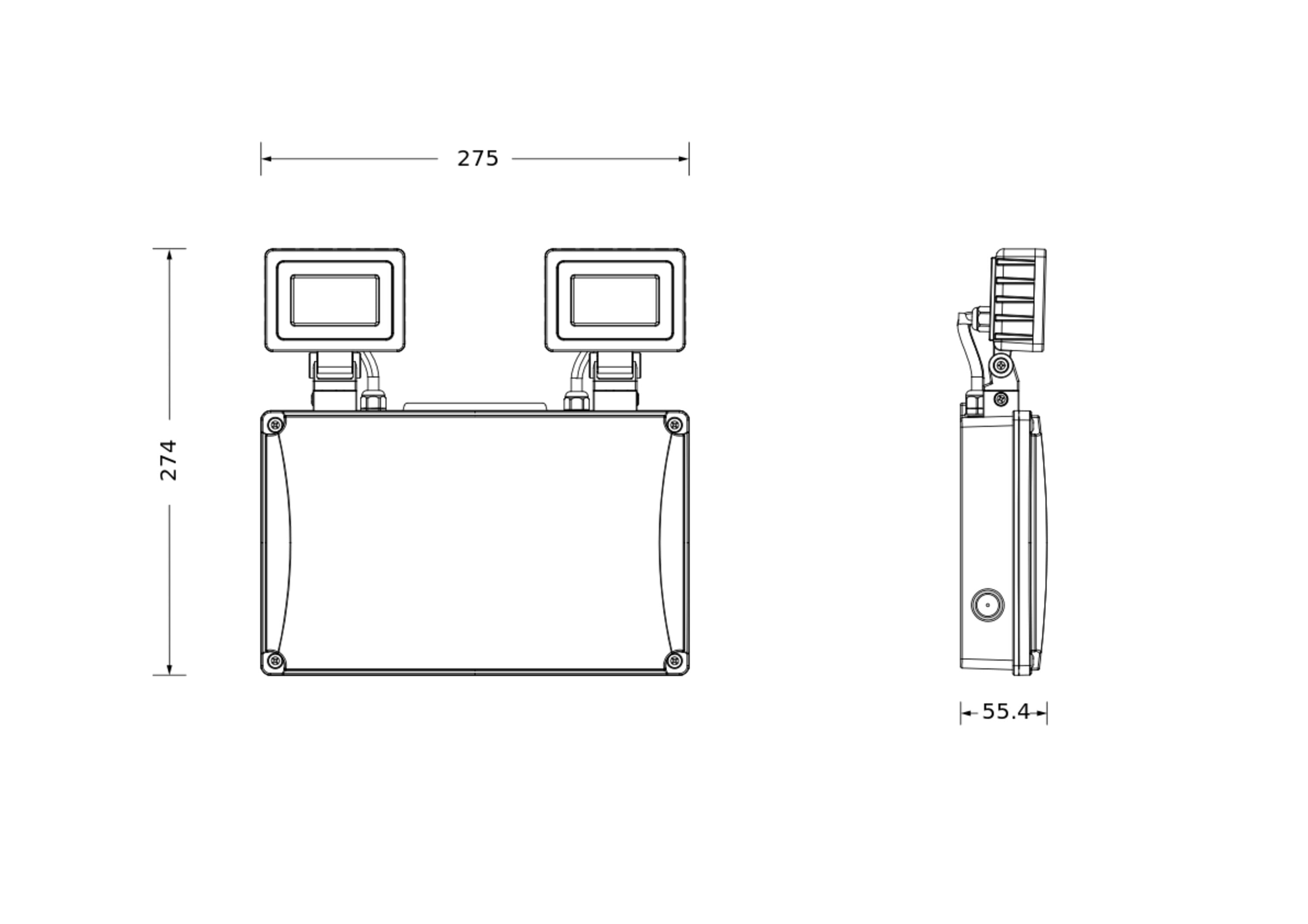 Vantaggi del prodotto Operatività della funzione di illuminazione di emergenza integrata con batteria LiFePO4 a lunga durata con 3h di tempo di scarica Illuminazione di emergenza in conformità alla norma IEC 60598-2-22 con driver e batteria per l'illuminazione di emergenza Doppi faretti completamente regolabili per un'illuminazione ottimale Caratteristiche del prodotto Grado di protezione: IP65 Tempo di esaurimento della batteria: 3 ore Tecnologia della batteria: LiFePO4 Test di funzione di illuminazione di emergenza: automatico (AT) Con interruttore di prova integrato per test manuali Modalità operativa: non mantenuta (NM) Aree di applicazione Illuminazione antipanico Parcheggi e siti industriali Uffici, istruzione, edifici pubblici Apparecchiatura / Accessori Viti e tasselli di montaggio inclusi