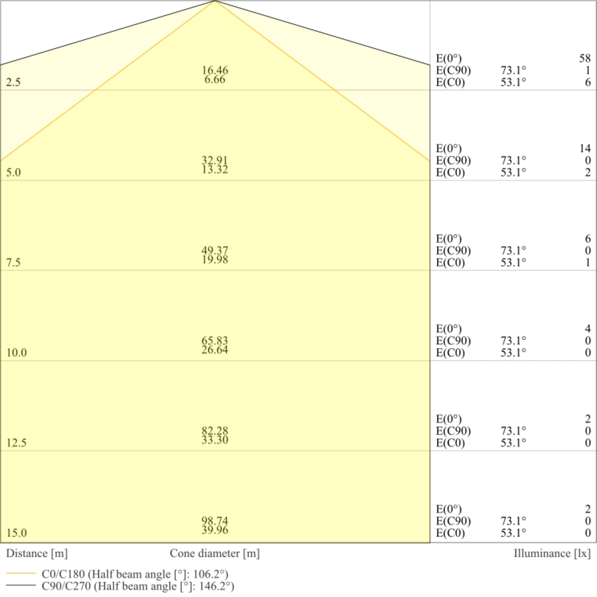 Angolo del fascio luminoso: