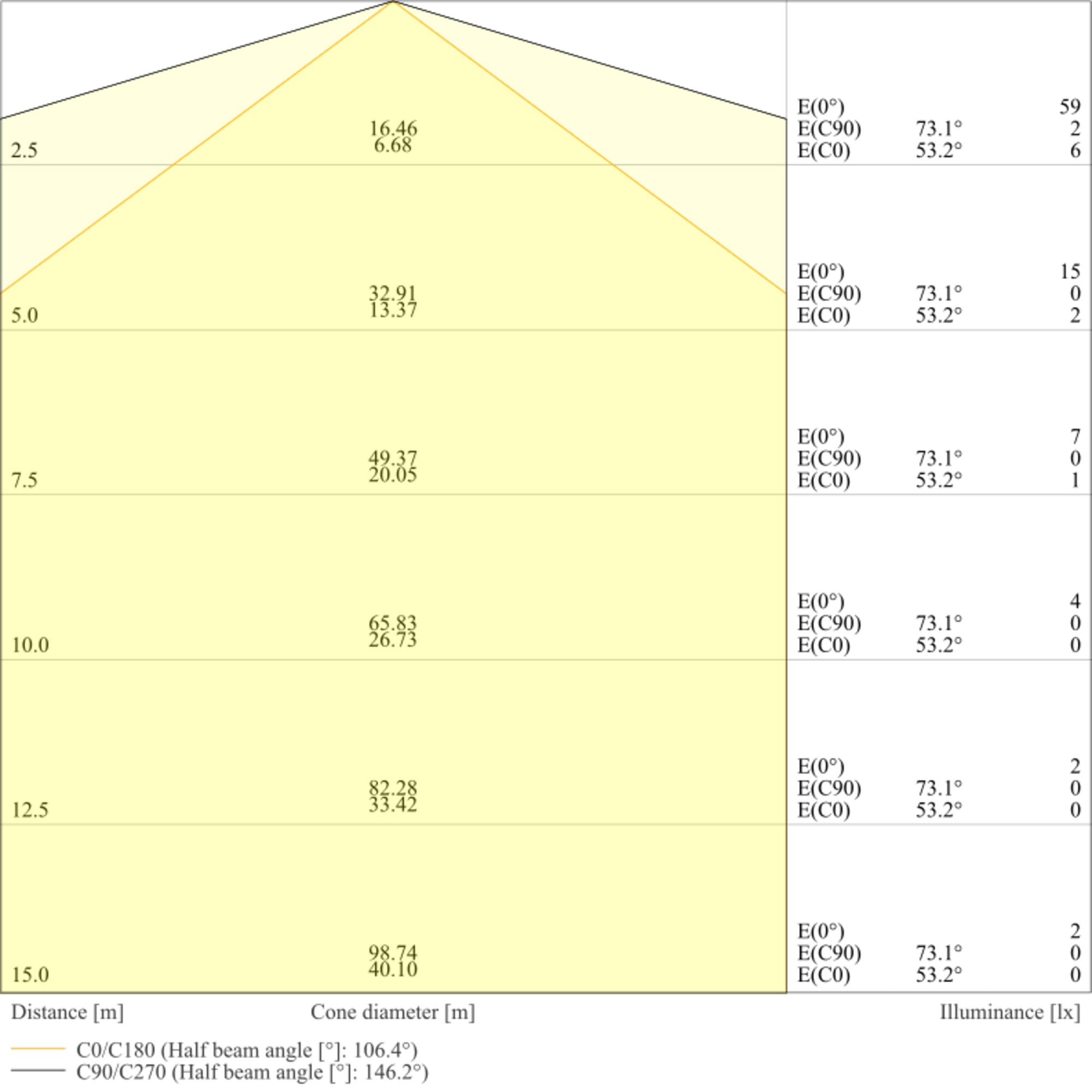 Angolo del fascio luminoso: