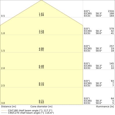 Angolo del fascio luminoso: