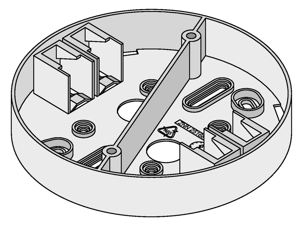 Adattatori di montaggio. Caratteristiche prodotto: Due settori di cablaggio separati per il lato di ingresso e di uscita. Aree applicative: Adattatore per sensori montati sopra intonaco del diametro di 116 mm.