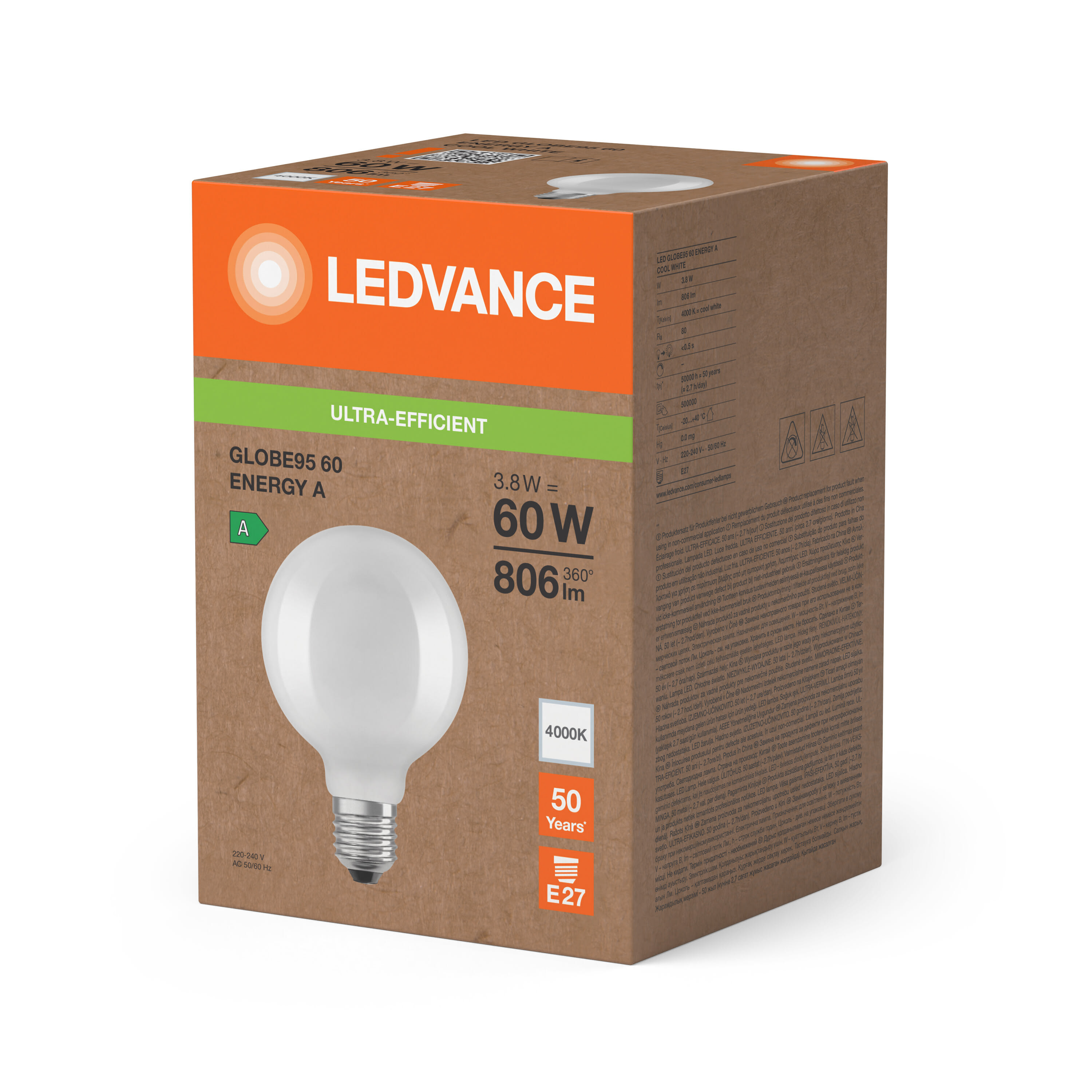 LEDVANCE - LDVSCG9560840SEA2 LEDG9560EELA 3.8W 840 GLFR E27 S LEDV