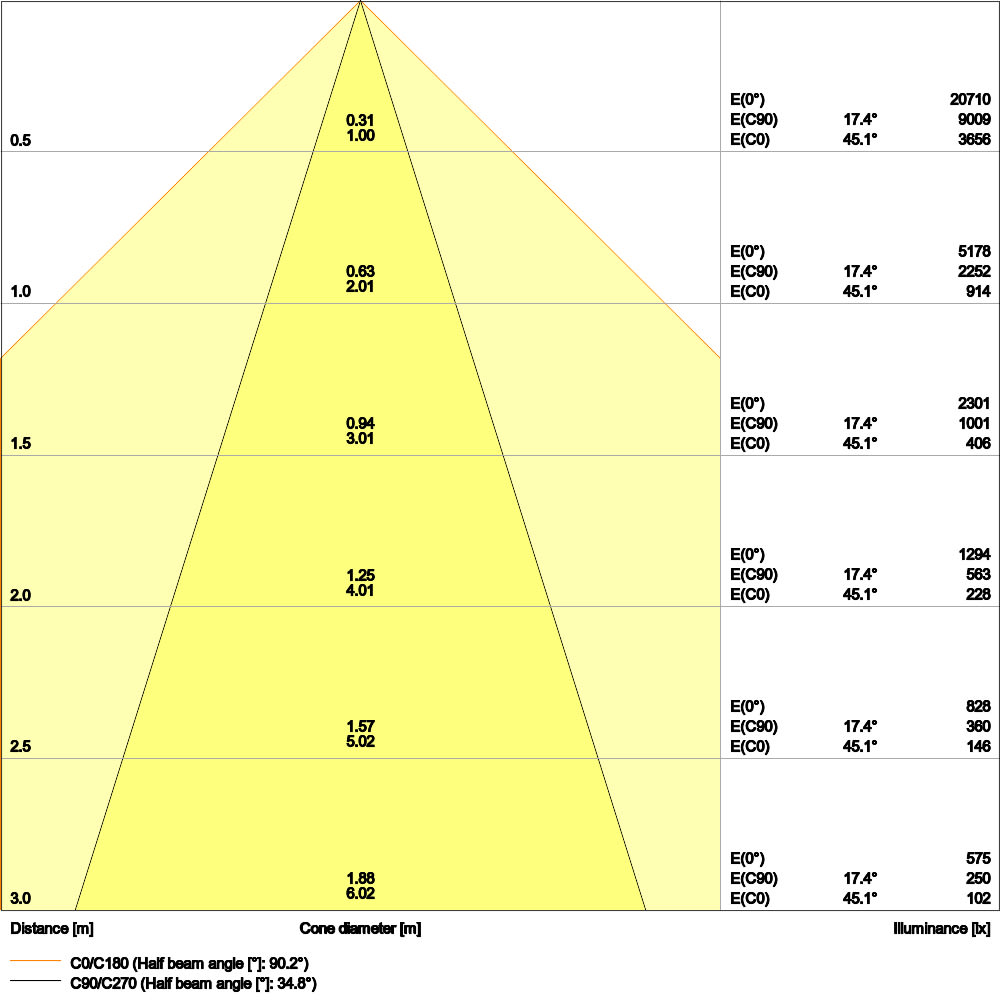 Flusso luminoso calcolato secondo la norma IEC 62722-2-1: