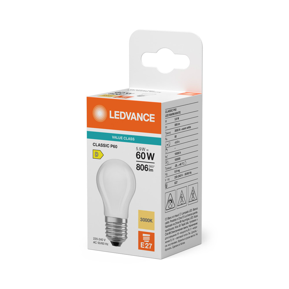 LEDVANCE - LDVVCP60830M1 LED CLP60 5.9W 830 FILFR E27 V LEDV
