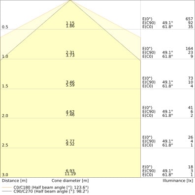 Angolo del fascio luminoso: