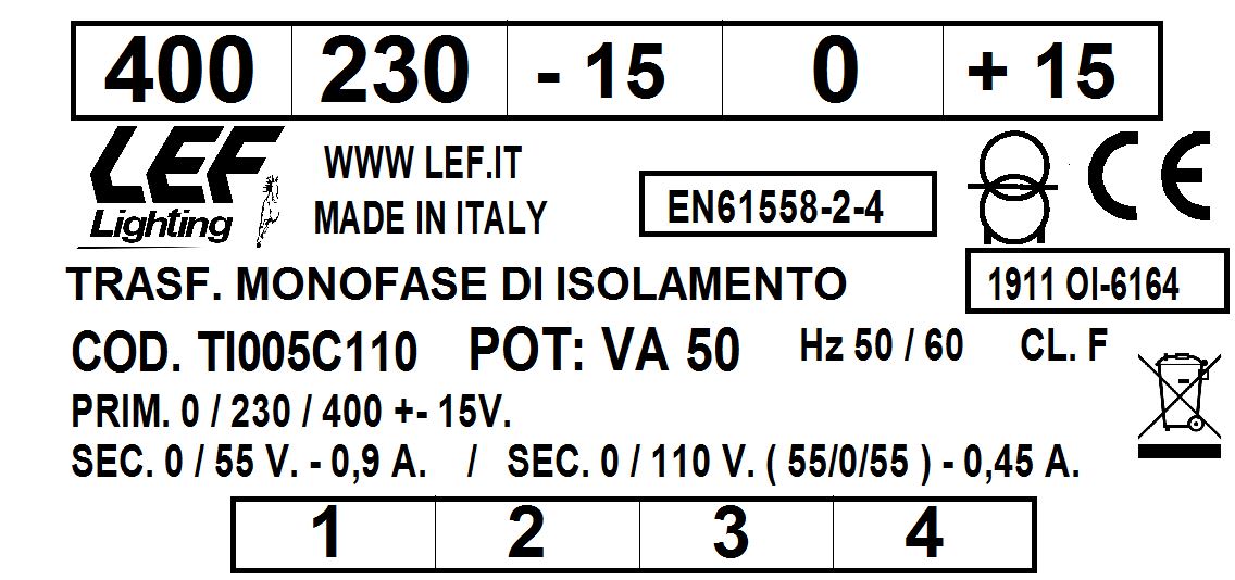 LEF LIGHTING SRL - LEFTI005C110 T.M. 50VA 230.400V / 55 110V