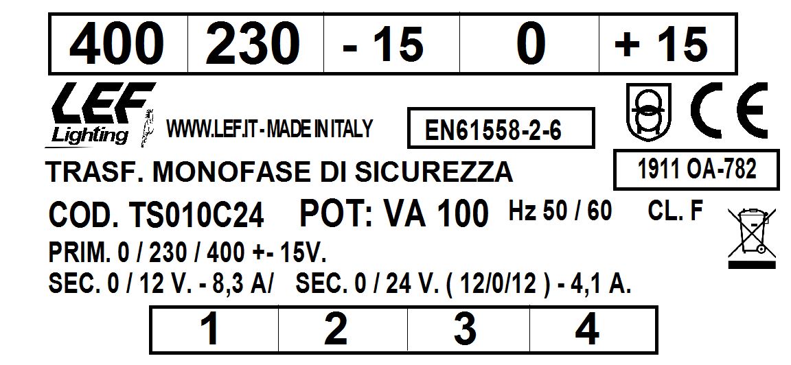 LEF LIGHTING SRL - LEFTS010C24 T.M. 100VA 230.400V / 12 24V