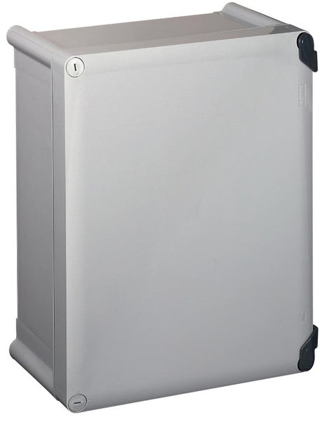 Scatola plastica 155 x 110 x 74 mm. IP66/IK08. Colore grigio T029. Pareti lisce. Coperchio opaco