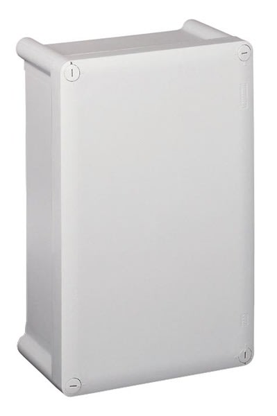 Scatola plastica 360 x 270 x 124 mm. IP55/IK07. Colore grigio RAL 7035. Pareti lisce. Coperchio opaco