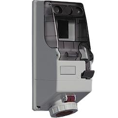 Presa interbloccata standard 3P+N+T 125x280mm, IP66, IK08, In= 16A, Vn=380÷415Vac, rossa. Predisposta con guida DIN35. Fornita senza pressacavi