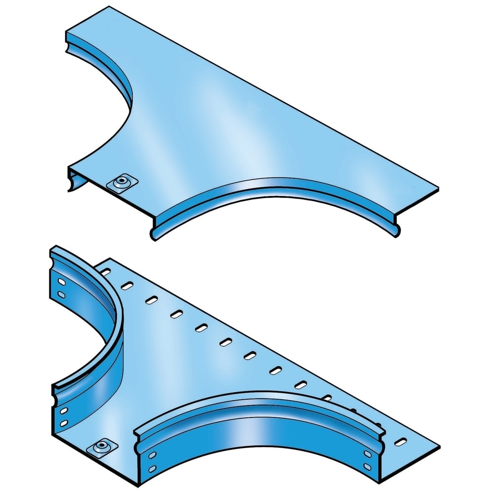 Derivazione laterale a T completa di coperchio. Altezza: 50 mm. Larghezza: 50 mm. Finitura G: Acciaio smaltato blu Gamma-P.