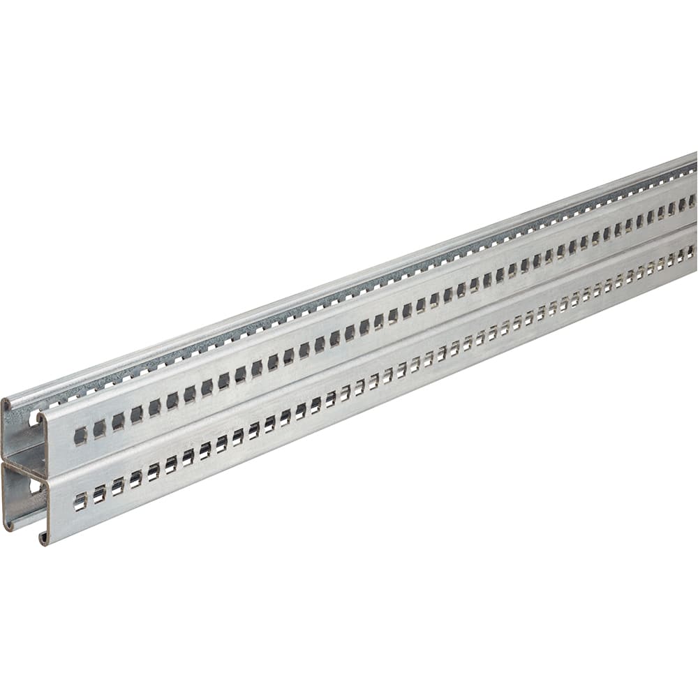 P41DFF25. Profilato doppio asolato 82x41 forato sul fondo e sul fianco. Spessore: 2,5 mm. Lunghezza: 3 m. Finitura Z: Acciaio zincato sendzimir.
