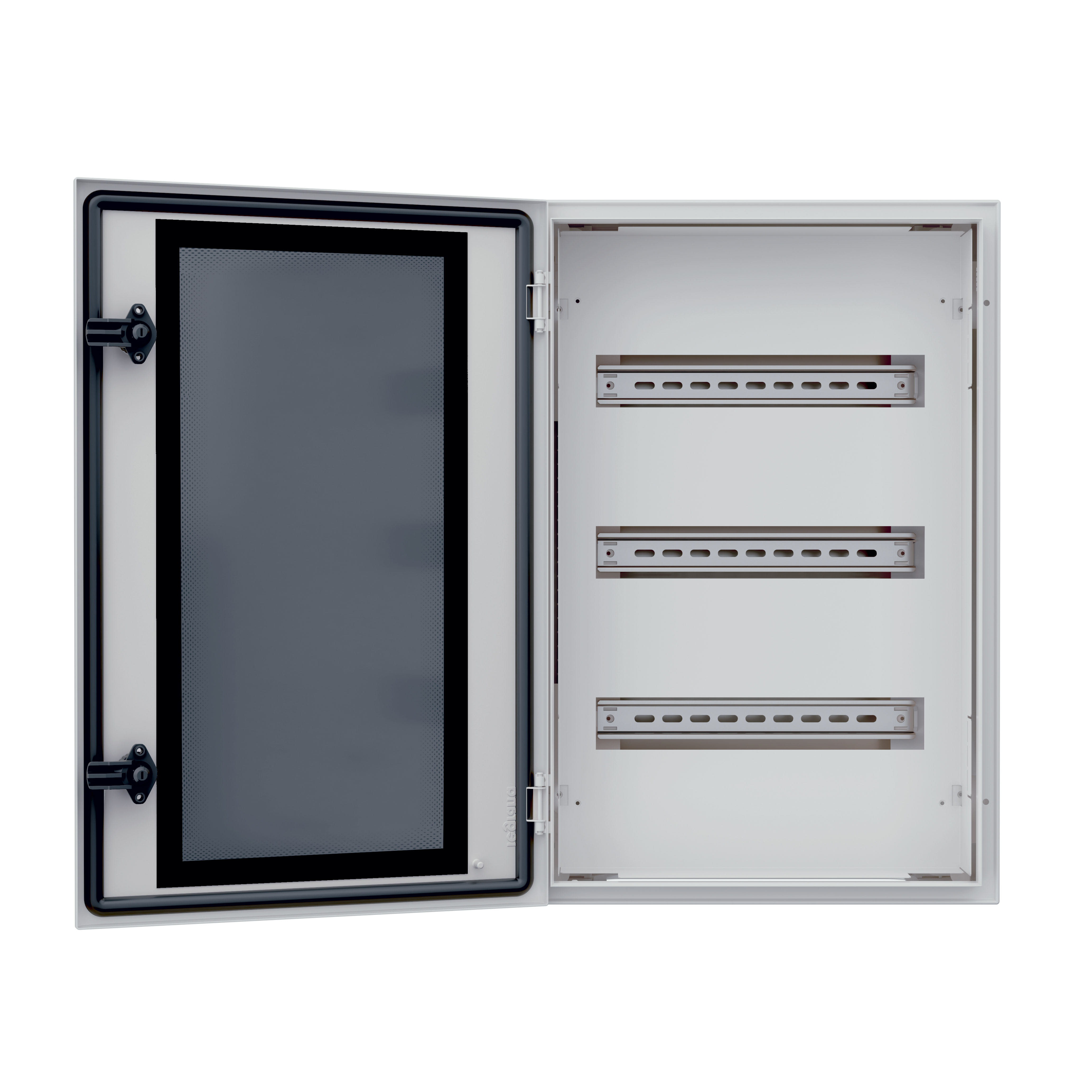 Telaio modulare in metallo per quadri 500 x 400 x 200 mm (3x16 moduli DIN). Kit completo fornito con montanti e pannelli finestrati. Fornito con 1 otturatore. Per quadri Atlantic-E, Atlantic inox e Marina