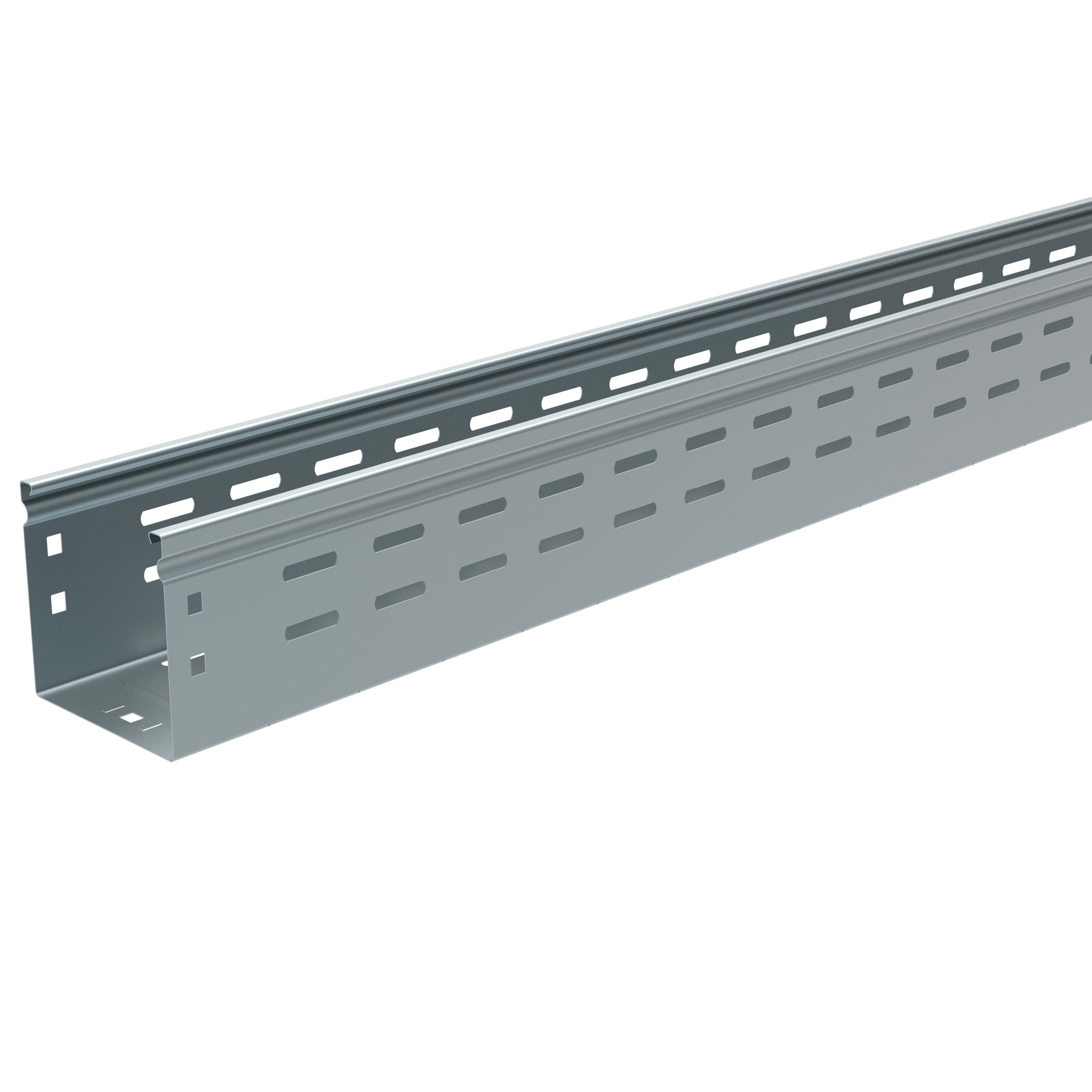 Base rettilinea forata liscia. Altezza 100 mm. Larghezza 100 mm. Lunghezza 3 m. Finitura Z: Acciaio zincato sendzimir