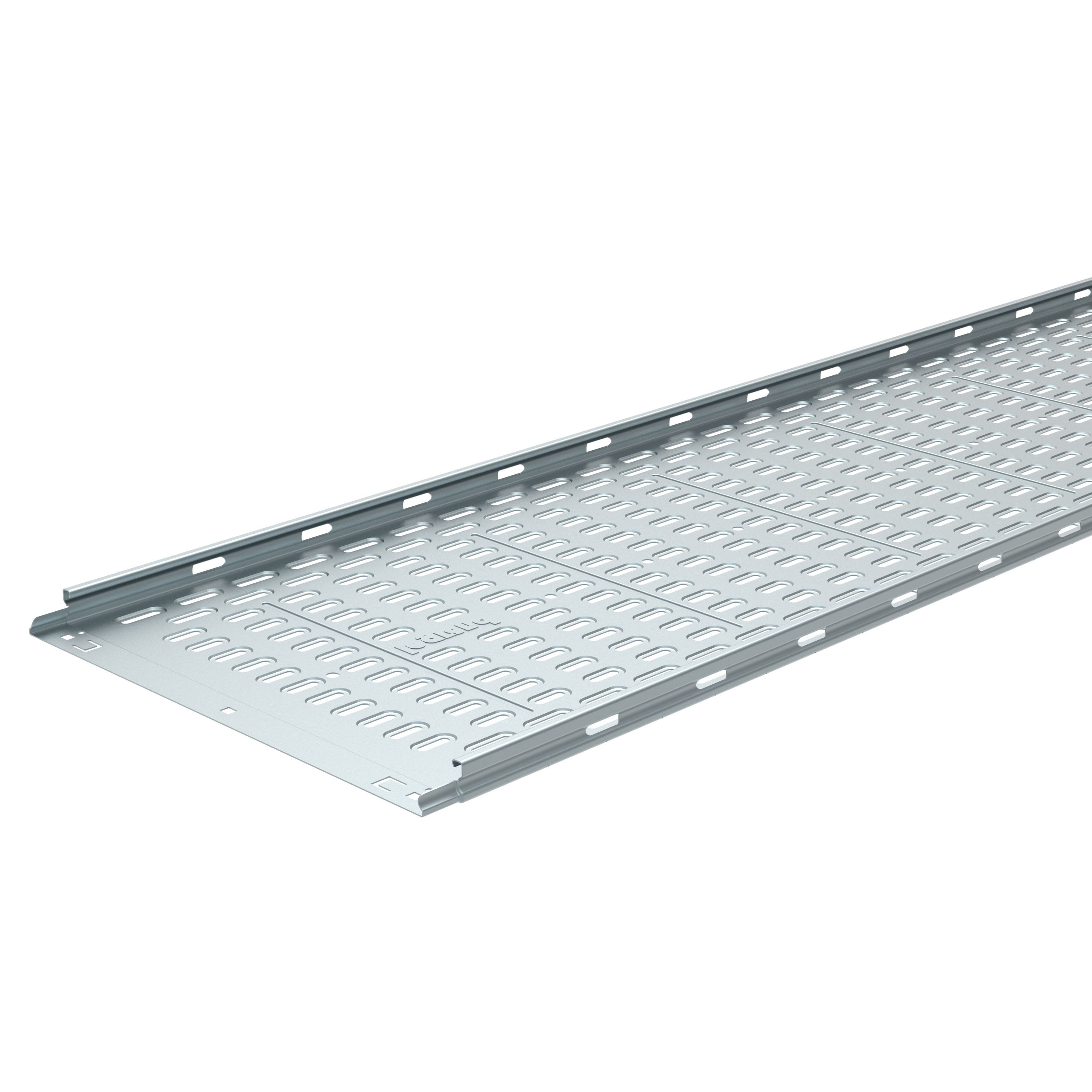 Base rettilinea forata imbutita MF. Altezza 25 mm. Larghezza 400 mm. Lunghezza 3 m. Finitura C: Acciaio zincato a caldo dopo lavorazione