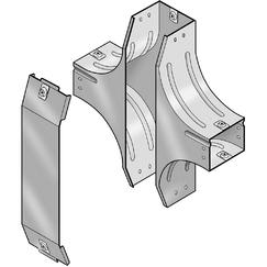 Incrocio verticale con variazione di piano, completo di coperchio. Altezza: 100 mm. Larghezza: 500 mm. Finitura C: Acciaio zincato a caldo dopo lavorazione.