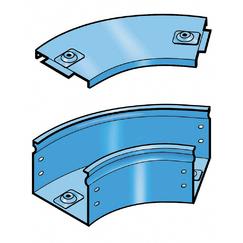 Curva piana a 45 completa di coperchio. Altezza: 100 mm. Larghezza: 400 mm. Finitura G: Acciaio smaltato blu Gamma-P