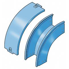 Curva in discesa a 90 completa di coperchio. Altezza: 100 mm. Larghezza: 400 mm. Finitura G: Acciaio smaltato blu Gamma-P.