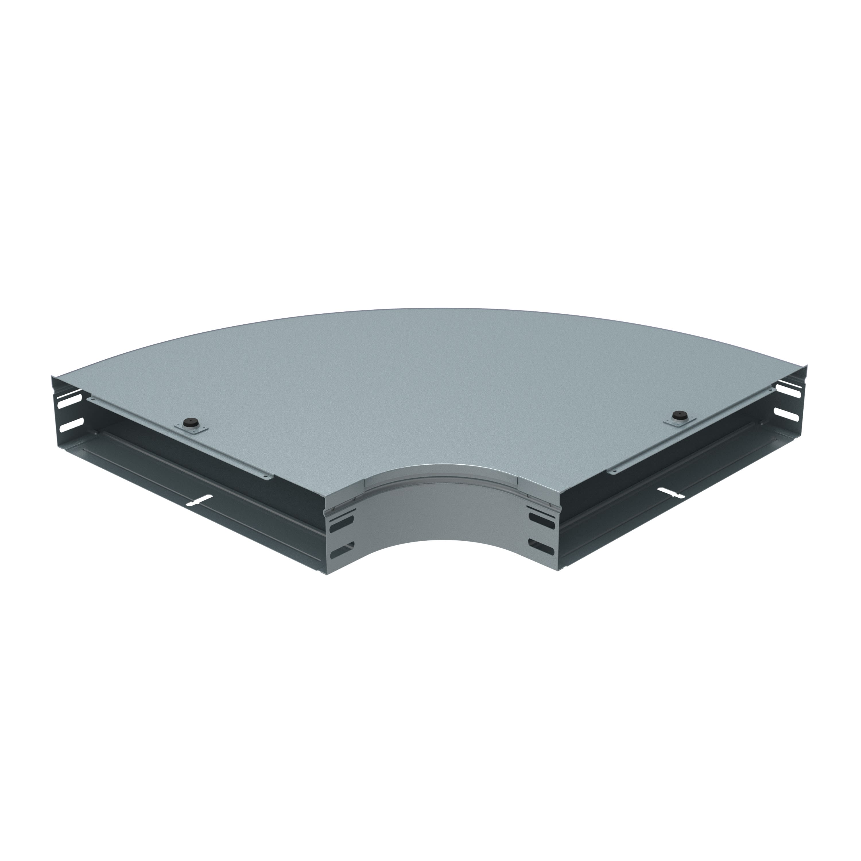 Curva piana a 90 completa di coperchio. Altezza: 75 mm. Larghezza: 500 mm. Finitura L: Acciaio inox AISI 316L