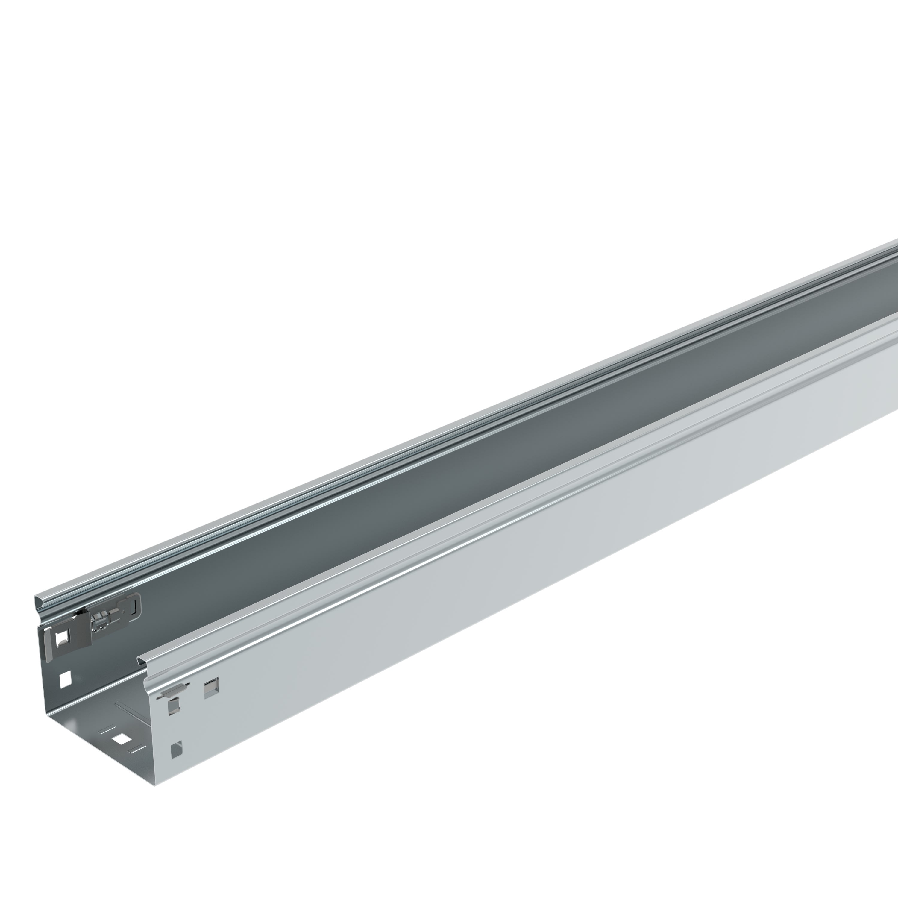 Base rettilinea chiusa liscia. Innesto rapido automatico. Altezza 75 mm. Larghezza 150 mm. Lunghezza 3 m. Finitura Z: Acciaio zincato sendzimir