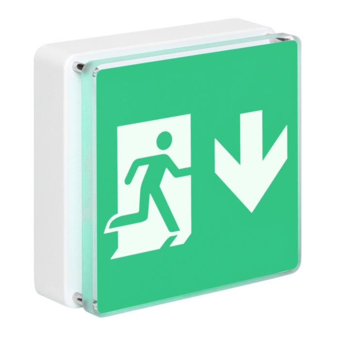 Emergenza a singola emissione a parete per applicazione indoor. La sorgente luminosa LED, di colore bianco freddo, con distribuzione luminosa General Lighting, è composta da 1 LED powerled, con una CCT 6500 K ed un CRI 80; il flusso luminoso della sorgente è di 227 lm, con un'efficienza nominale di 227.0 lm/W. Il corpo dell'apparecchio, realizzato in alluminio pressofuso en ab - 46100, presenta una finitura di colore bianco ral 9003 goffrato, ottenuta tramite verniciatura a polvere; il diffusore è prodotto in polimetilmetacrilato uv resistente, con una lavorazione di serigrafia. Il grado di protezione è IP40; il peso complessivo è di 1.2 kg. La potenza assorbita dall'apparecchio è di 1,5 W.