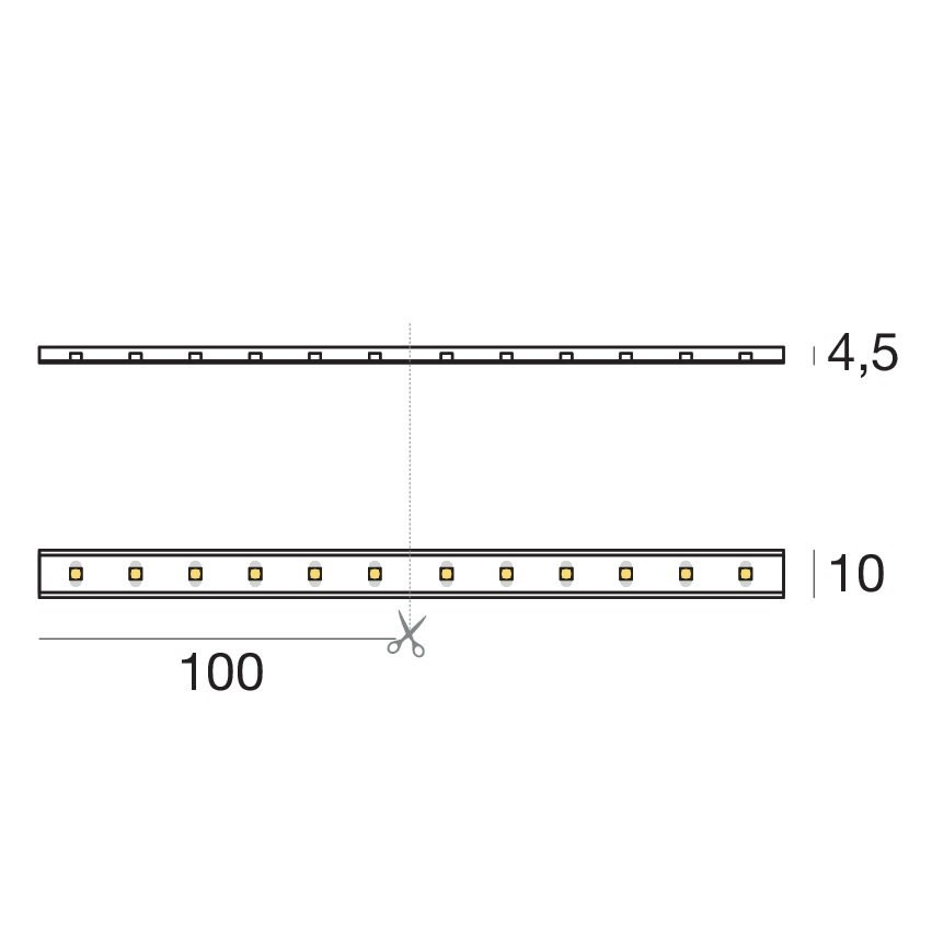 Led strip a singola emissione per applicazione outdoor. La sorgente luminosa LED, di colore super caldo, con distribuzione luminosa, presenta un'emissione, è composta da 600 LED topled, con una CCT 2700 K ed un CRI 80; il flusso luminoso della sorgente è di 3500 lm, con un'efficienza nominale di 72.9 lm/W.