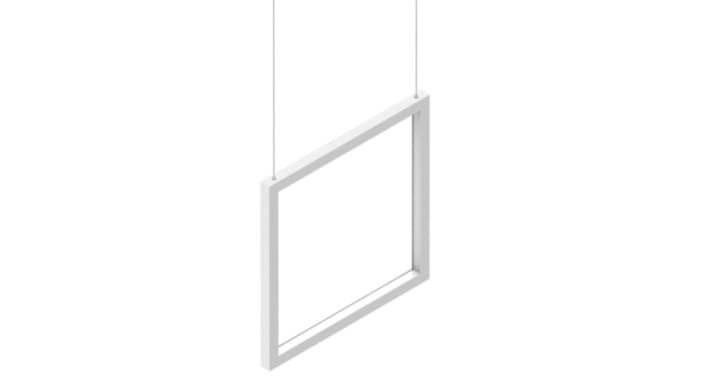 Sospensione a singola emissione per applicazione indoor. La sorgente luminosa LED, di colore bianco caldo, con distribuzione luminosa General Lighting, è composta da 288 LED topled, con una CCT 3000 K ed un CRI 80; il flusso luminoso della sorgente è di4810 lm, con un'efficienza nominale di 106.9 lm/W. Il corpo dell'apparecchio, realizzato in alluminio 6060, presenta una finitura di colore bianco ral 9003 goffrato, ottenuta tramite verniciatura a polvere; il diffusore è prodotto in policarbonato uv resistente. Il grado di protezione è IP40; il peso complessivo è di 3 kg. Il driverm d’alimentazione non è fornito e deve essere ordinato separatamente. La potenza assorbita dall'apparecchio è di 45 W.