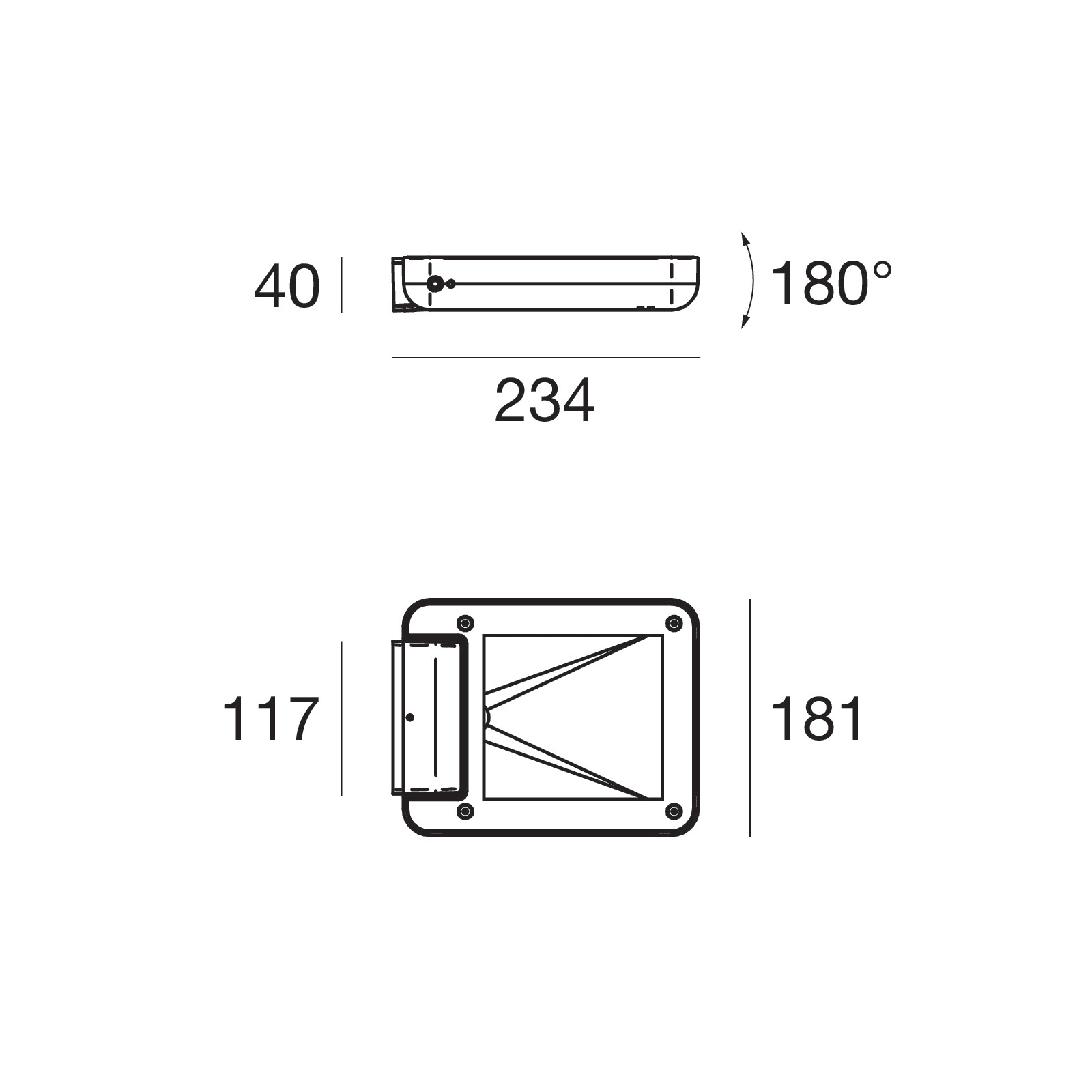 Proiettori a singola emissione per applicazione outdoor. La sorgente luminosa LED, di colore bianco caldo, con distribuzione luminosa Asymmetric Wallwasher, è composta da 1 LED arrayled, con una CCT 3000 K ed un CRI 80; il flusso luminoso della sorgente è di 1627 lm, con un'efficienza nominale di 120.5 lm/W.