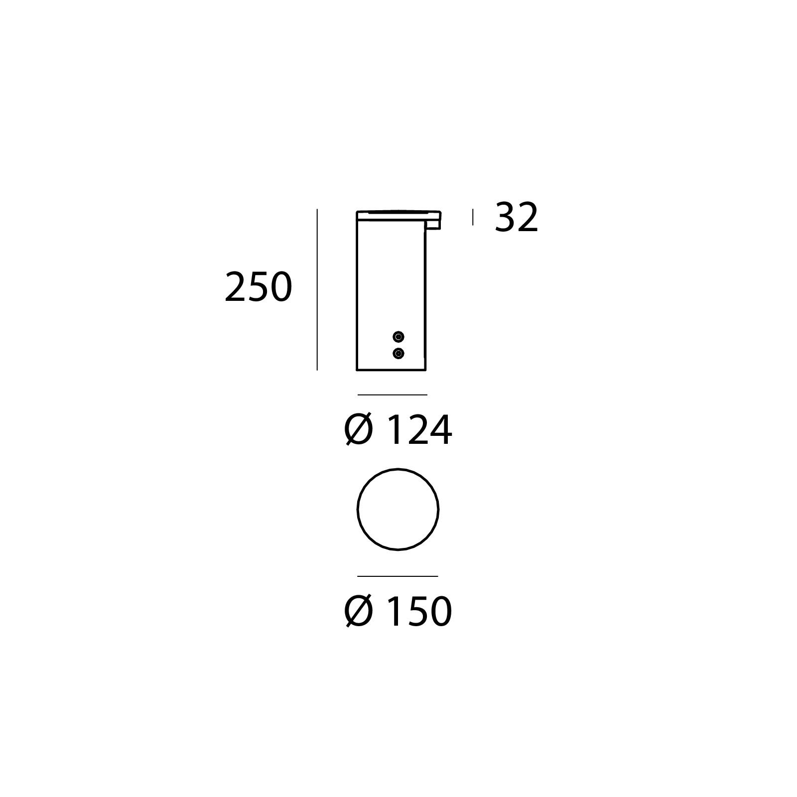 Il corpo dell'apparecchio, realizzato in alluminio pressofuso en ab - 46100, presenta una finitura di colore dark brown, ottenuta tramite anodizzazione poro aperto + verniciatura a polvere; il diffusore è prodotto in policarbonato uv resistente. Il grado di protezione è IP66; il peso complessivo è di 2.15 kg.