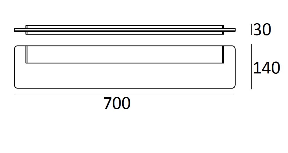 Mensola luminosa dallo stile pulito ed elegante, connubio di tecnologia all’avanguardia ed eleganza minimal. Materiali: corpo in alluminio verniciato alluminio lucido; diffusore in polimetilmetacrilato con serigrafia a laser. Lampada: 50 W LED 220-240V 3000K - A 4000 lm CRI 90.