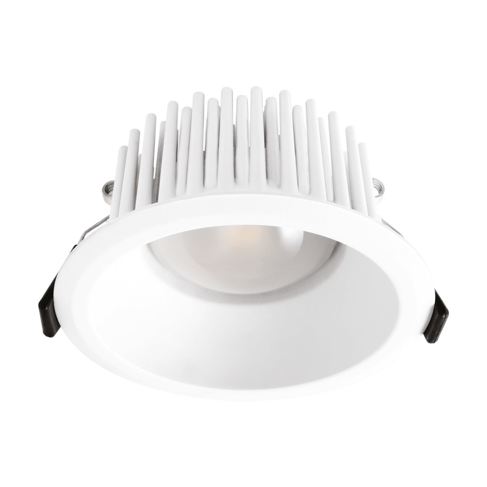 Downlights a singola emissione per applicazione indoor. La sorgente luminosa LED, di colore bianco caldo, con distribuzione luminosa General Lighting, è composta da 1 LED arrayled, con una CCT 3000 K ed un CRI 80; il flusso luminoso della sorgente è di 3431 lm, con un'efficienza nominale di 137.2 lm/W.
