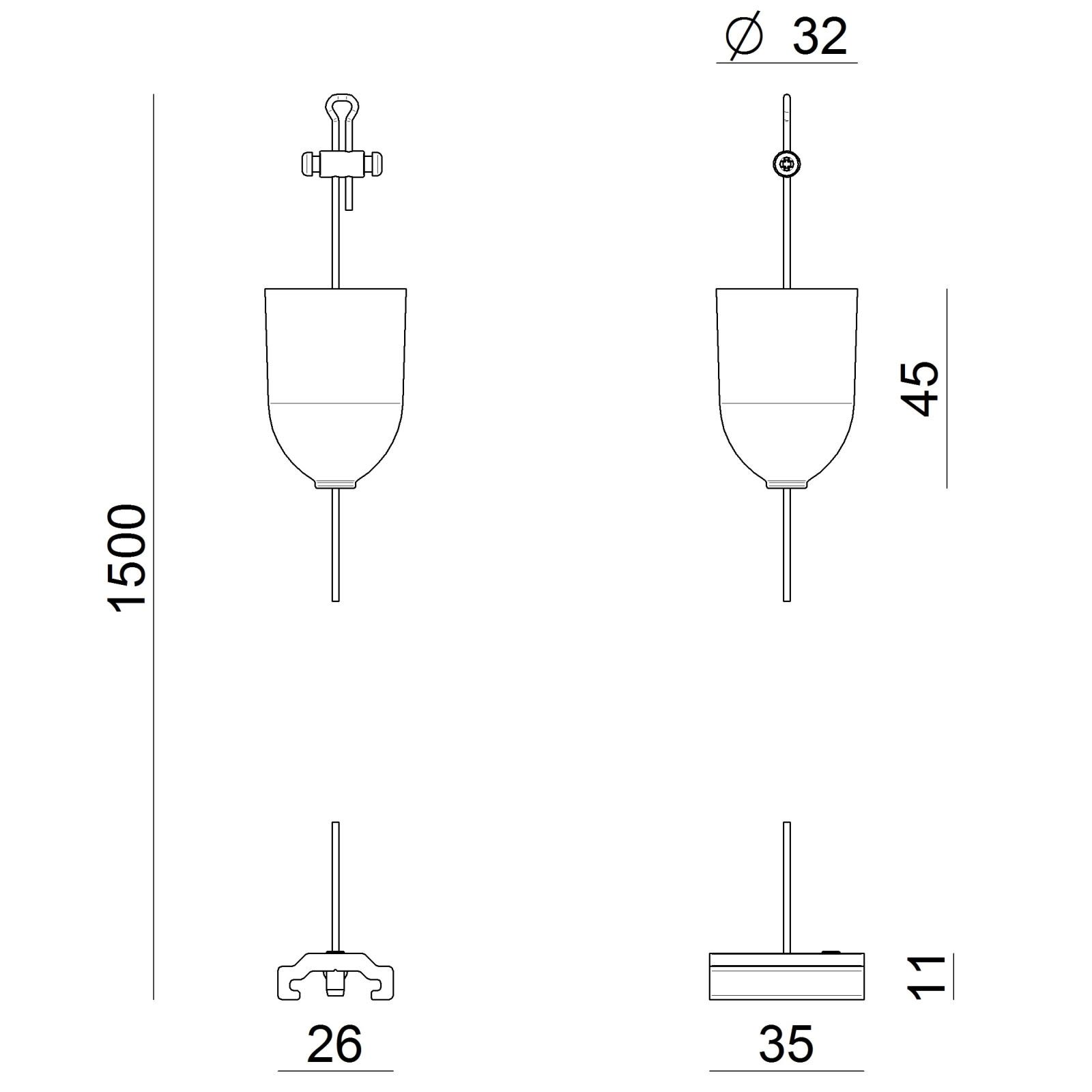 Sospensioni | Sospensione 1.5 m con rosone e staffa | Kit sospensione nero 1.5m + staffa (9000-KIT5-1,5-B).