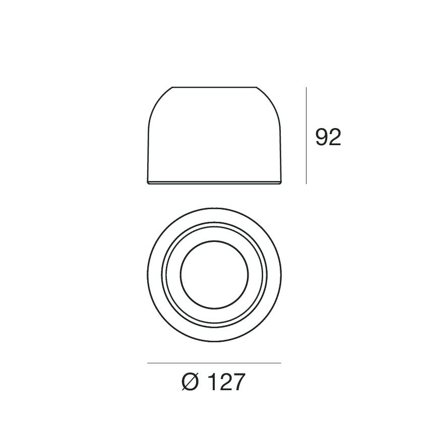 Plafone | 220-240 V | topLED 11 W 500 mA | CRI 90 8472. Plafone a singola emissione per applicazione indoor. La sorgente luminosa LED, di colore bianco caldo, con distribuzione luminosa General Lighting, è composta da 1 LED topled, con una CCT 3000 K edun CRI 90; il flusso luminoso della sorgente è di 1162 lm, con un'efficienza nominale di 105.6 lm/W. Il diffusore è prodotto in vetro; la montatura è prodotta in alluminio, con una finitura di colore bianco ral 9003 goffrato, ottenuta tramite verniciatura. Il grado di protezione è IP40; il peso complessivo è di 0.790 kg. La potenza assorbita dall'apparecchio è di 11 W. L'apparecchio presenta una classe di isolamento I ed è installabile a soffitto. Conforme alla norma EN 60598-1 e alle relative prescrizioni particolari.