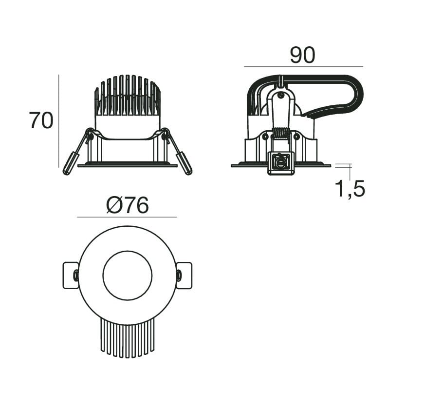 L'apparecchio presenta una classe di isolamento III ed è installabile a soffitto, con foro tondo di diametro 68 mm (nel cartongesso).