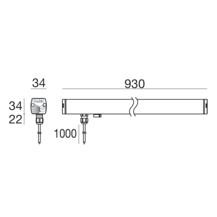 Elementi lineari a singola emissione per applicazione outdoor. La sorgente luminosa LED, di colore bianco naturale, con distribuzione luminosa Asymmetric Wallwasher, è composta da 144 LED topled, con una CCT 4000 K ed un CRI 80; il flusso luminoso dellasorgente è di 2514 lm, con un'efficienza nominale di 125.7 lm/W. Il corpo dell'apparecchio, realizzato in alluminio 6060, presenta una finitura di colore alluminio anodizzato, ottenuta tramite anodizzazione 20 µm. Il grado di protezione è IP66; il peso complessivo è di 1 kg. Il driver d’alimentazione non è fornito e deve essere ordinato separatamente. La potenza assorbita dall'apparecchio è di 20 W.