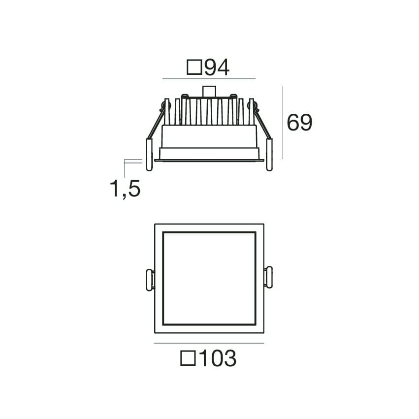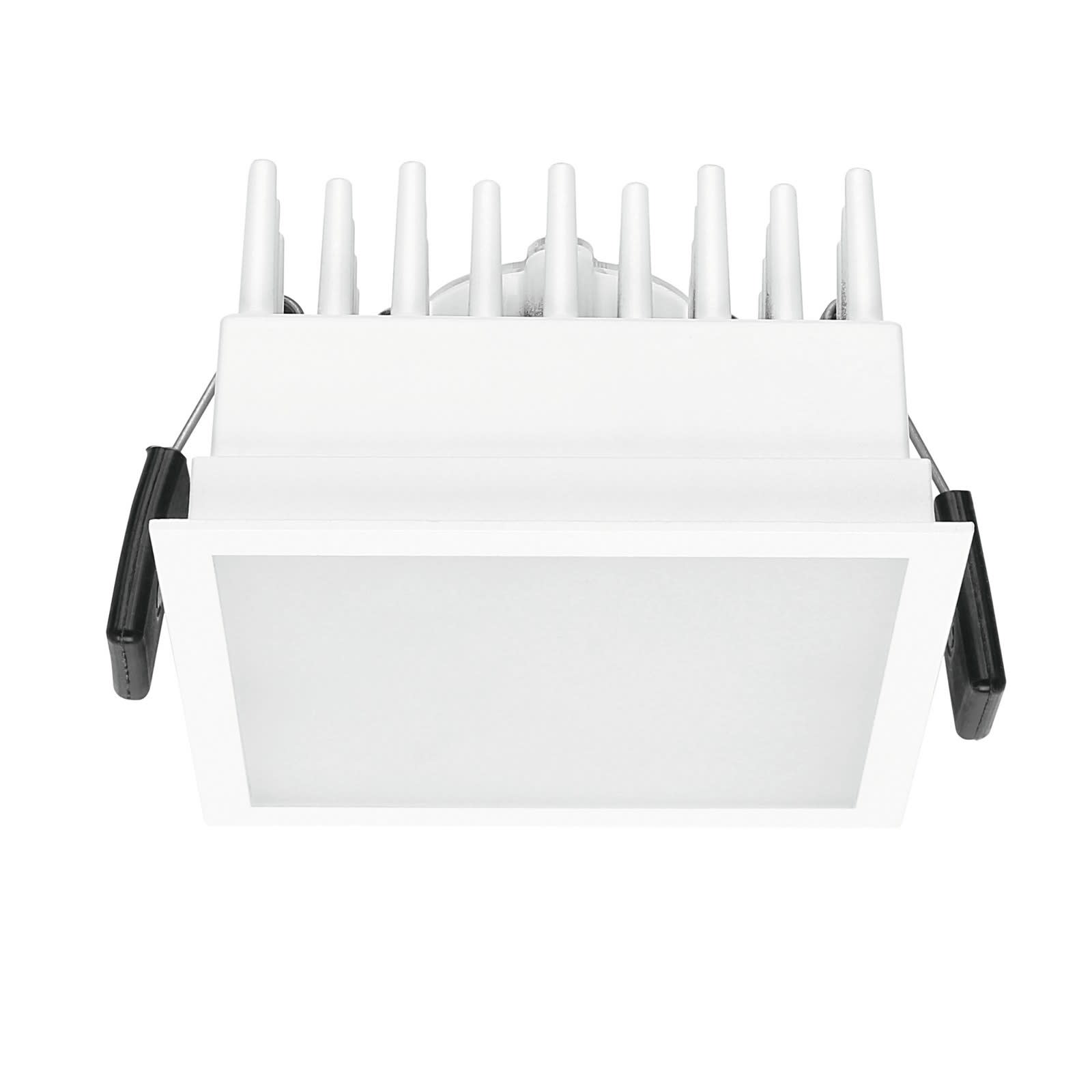 Downlights a singola emissione per applicazione indoor. La sorgente luminosa LED, di colore bianco caldo, con distribuzione luminosa General Lighting, è composta da 5 LED powerleds, con una CCT 3000 K ed un CRI 80; il flusso luminoso della sorgente è di 980 lm, con un'efficienza nominale di 98.0 lm/W.