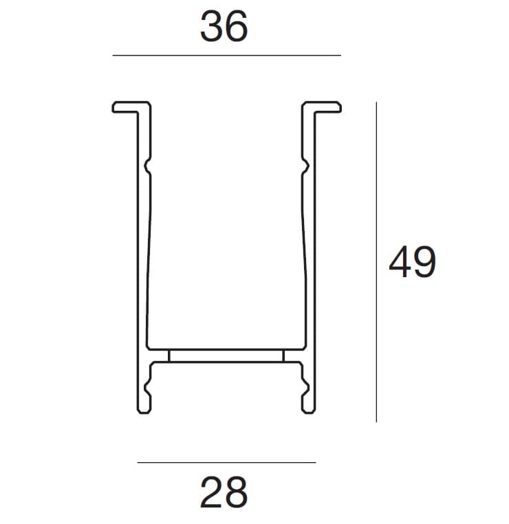 Profilo in alluminio per montaggio in incasso. Utilizzare unitamente al profilo per il passaggio dei cavi. L: 1143mm.