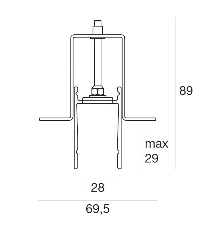 Profilo in alluminio per installazione trimless; montaggio in incasso per soffitto in cartongesso. L: 1143 mm.
