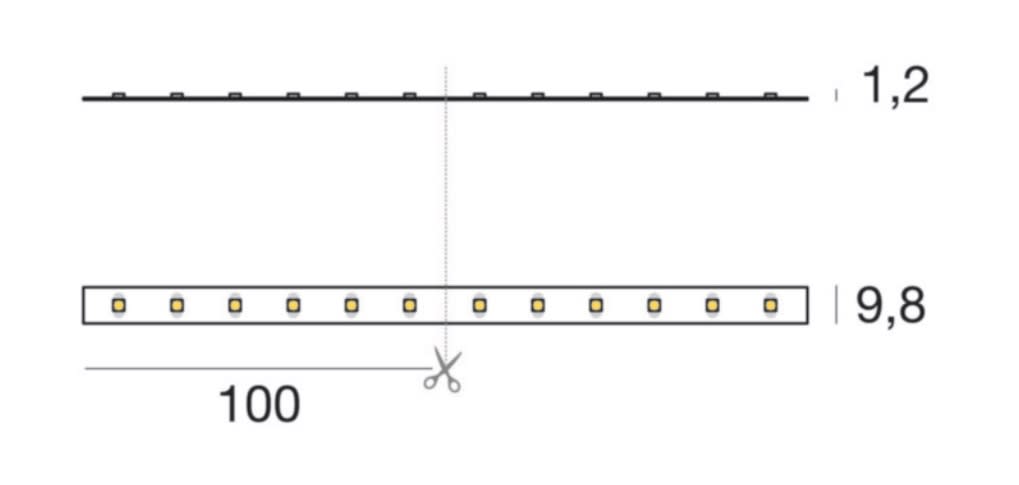Led strip a singola emissione per applicazione indoor. La sorgente luminosa LED, di colore super caldo, con distribuzione luminosa General Lighting, è composta da 350 LED topled, con una CCT 2700 K ed un CRI 85; il flusso luminoso della sorgente è di 1970 lm, con un'efficienza nominale di 123.1 lm/W.