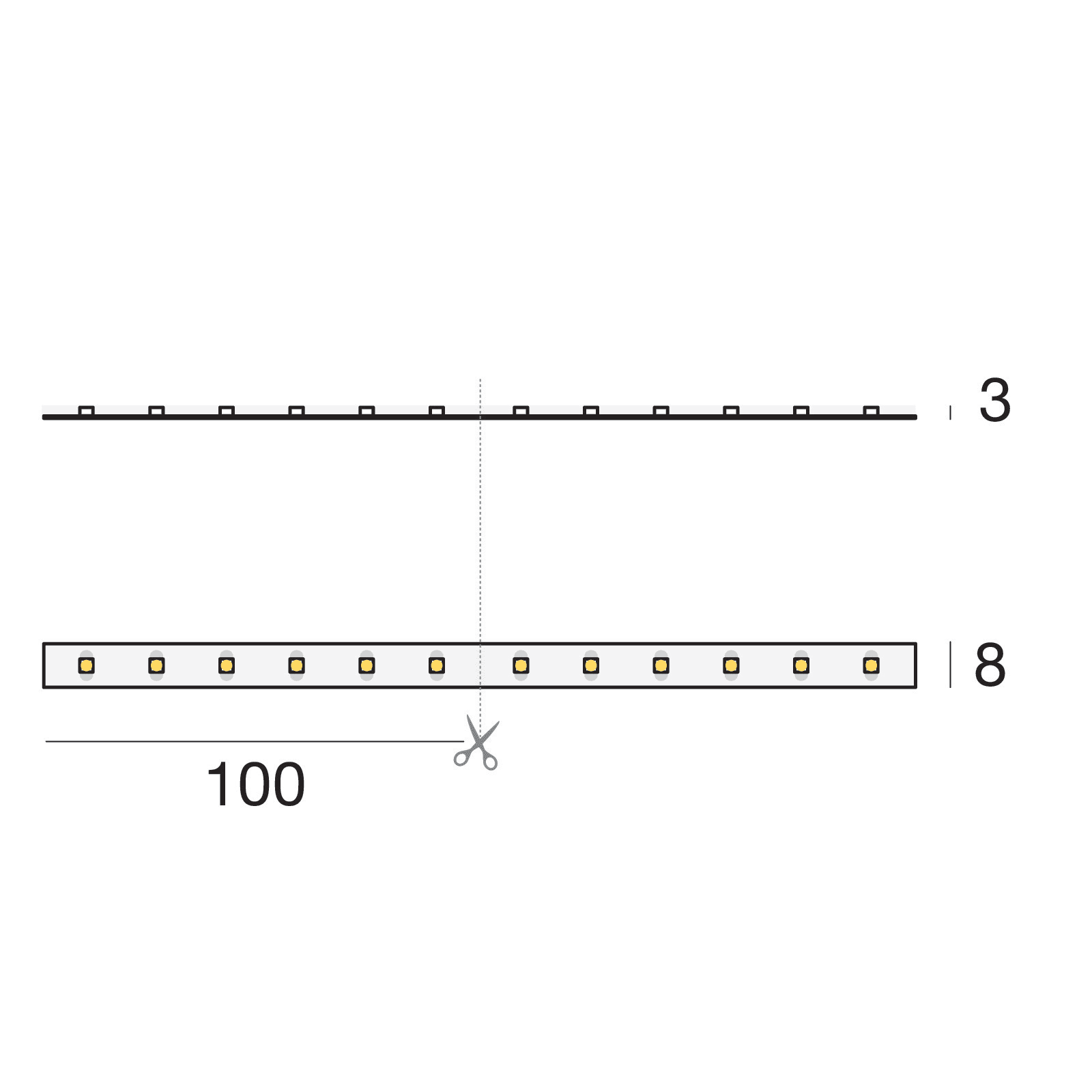 Led strip a singola emissione per applicazione indoor. La sorgente luminosa LED, di colore bianco naturale, con distribuzione luminosa Extra Wide Flood, presenta un'emissione, è composta da 300 LED topled, con una CCT 4000 K ed un CRI 80; il flusso luminoso della sorgente è di 2749 lm, con un'efficienza nominale di 110.0 lm/W.