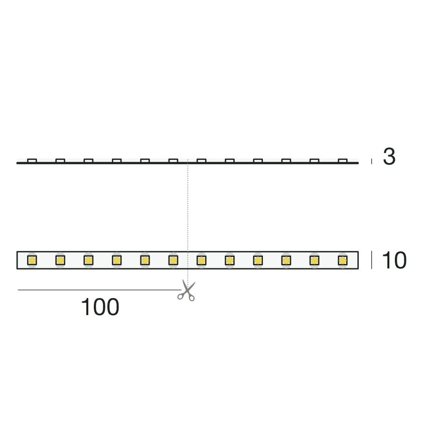 Led strip a singola emissione per applicazione indoor. La sorgente luminosa LED, di colore bianco naturale, con distribuzione luminosa Extra Wide Flood, presenta un'emissione, è composta da 300 LED topled, con una CCT 4000 K ed un CRI 80; il flusso luminoso della sorgente è di 5759 lm, con un'efficienza nominale di 96.0 lm/W.