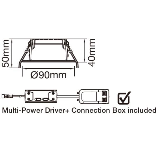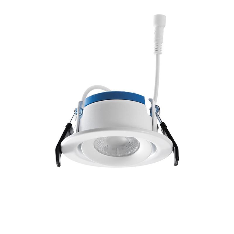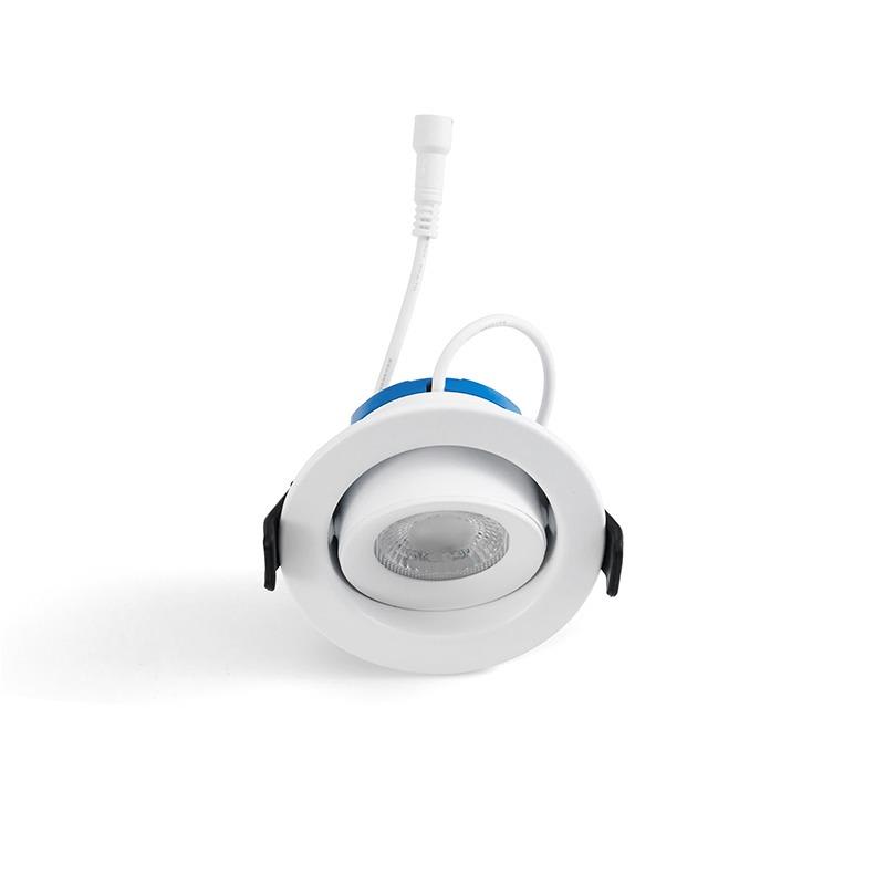 Faretto da incasso, ?90 * H40mm, ritaglio ?68-73 mm, orientabile, Triac Dim, copribile, dip switch 3W / 4,5 W, dip switch 3CCT 2700K / 3000K / 4000K, 350lm / 550lm, 120lm / W, UGR<29, IP65 anteriore / IP20 posteriore, IK02, BA60, SDCM<5, -20?C~40 ?C, 50000h L80B10 (50000h L80B10 per LED, 50 000h per driver), 5 anni di garanzia, Driver esterno LDS, Bridgelux SMD 2835 LED, Classe II, Bianco (RAL9016, Lucido), Corpo in ferro + Lente PC, PF0.7, 50/60Hz, RG1, RA80, collegabile, senza sfarfallio, cavo da 0,5 mcon connettore CC, cavo da 0,15 m con scatola di connessione rapida per PC, inclinabile di 20?, montaggio ad incasso. Certificato: CE, Erp, RoHS, REACH, BBC/RE2020