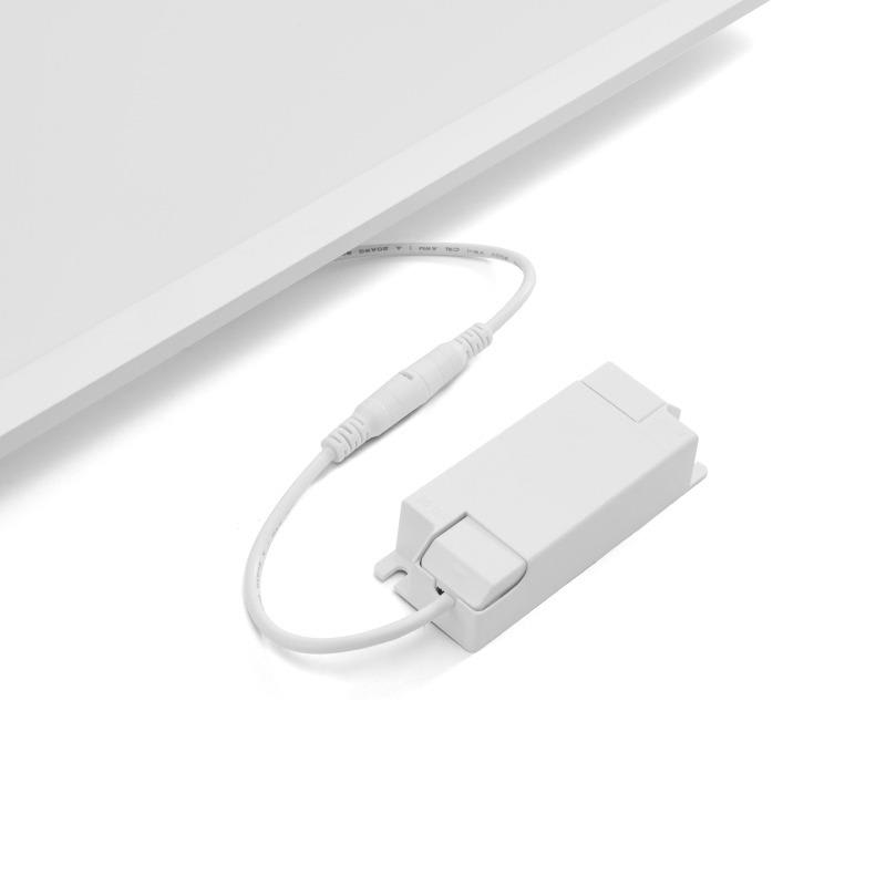 Pannello retroilluminato 600x600, On/Off, 32W, 4000K, 3520lm, 110lm/W,UGR<22, 220-240V, IP20, IK02, BA120, SDCM5(ANSI), SDCM3, -20?/+ 40?C, 50.000H (50.000h L80B10 per LED, 50.000H per driver), driver esterno TOSPO, LED Lumileds SMD 2835, Classe II, bianco (RAL9016, lucido), diffusore prismatico e corpo in alluminio+piastra posteriore SPCC, cavo 15cm con connettore femmina bianco, connettore maschio 15cm dal driver. 2 ganci di sicurezza. 5 anni di garanzia